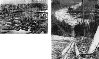 After the felling operations logs would be transported from the forests to their point of floating on the river by means of terrestrial transportation using animals like hauling by yoked cattle dragging by cattle the chariot filled with timbers and sledging with horses . Once on shore these logs could have been arranged on the ground to form a raft and tied together by ropes preparing to be attached to the stern of the boat for export.